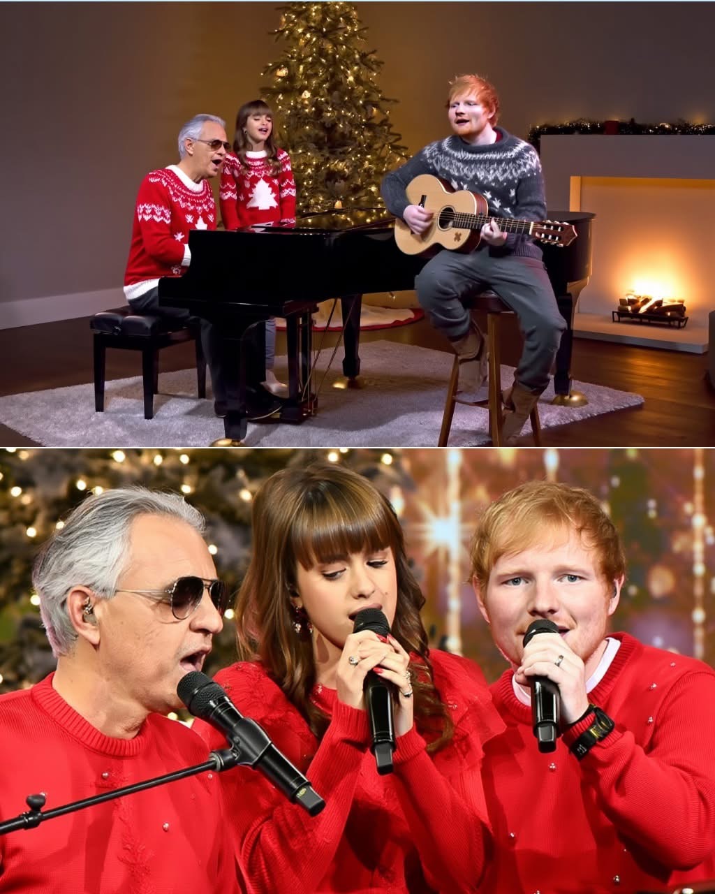 The holiday season has a new soundtrack — and it comes from a trio no one expected but everyone instantly fell in love with. Andrea Bocelli, alongside his 12-year-old daughter Virginia, has joined forces with Ed Sheeran for a brand-new Christmas single called “Under the Winter Sky.” The song is soft, cozy, and full of that feeling you get when you stand under twinkling lights on a cold December night. Andrea’s voice begins rich and warm, Virginia answers with a sweet echo, and Ed Sheeran ties it all together with his signature guitar and soft storytelling tone. The combination? Pure Christmas magic. Fans are especially touched by the final line — sung by all three: “If love is with us, Christmas is everywhere.” The internet is already calling it “the most wholesome collaboration of the year.”